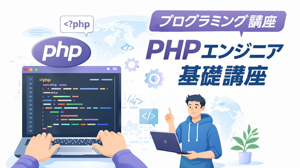 本講座では、「PHP」の基本文法からはじめ、Webサイトを構築する技術、データベースを使用したシステムを構築する技術、検索エンジンのようなWebアプリケーションを構築できるようになる技術の習得を目指します。IT業界へ就職・転職したい方、エンジニアとしてスキルアップ・キャリアアップしたい方にオススメです。